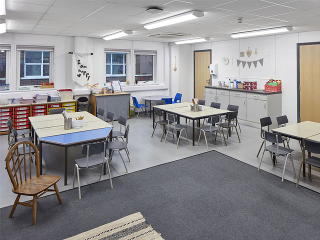 Wernick’s standard classroom specification was upgraded to accommodate the additional needs of the pupils. The single-storey building consists of 18 modules in total, contains four classrooms and is fully equipped with DDA compliant toilet and shower rooms. Withdrawal areas and sensory classrooms were incorporated into the design of the building to provide an appropriate and engaging environment for the pupils.